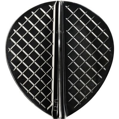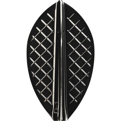 Introducing a new grid-like framework and overall durability improvements by three different thicknesses.  The thickest portion runs along the edge.  The added thickness around the sides and at the shaft socket strengthens the flight and will decrease tears along its length.  By combining a medium thickness with the thinnest portion of the flight, it creates the inner lattice work.  This combination works to disperse external pressure.  This decentralization of the external pressure has an effect not only on durability but also on shape retention, which will greatly extend the usable life of the flight.